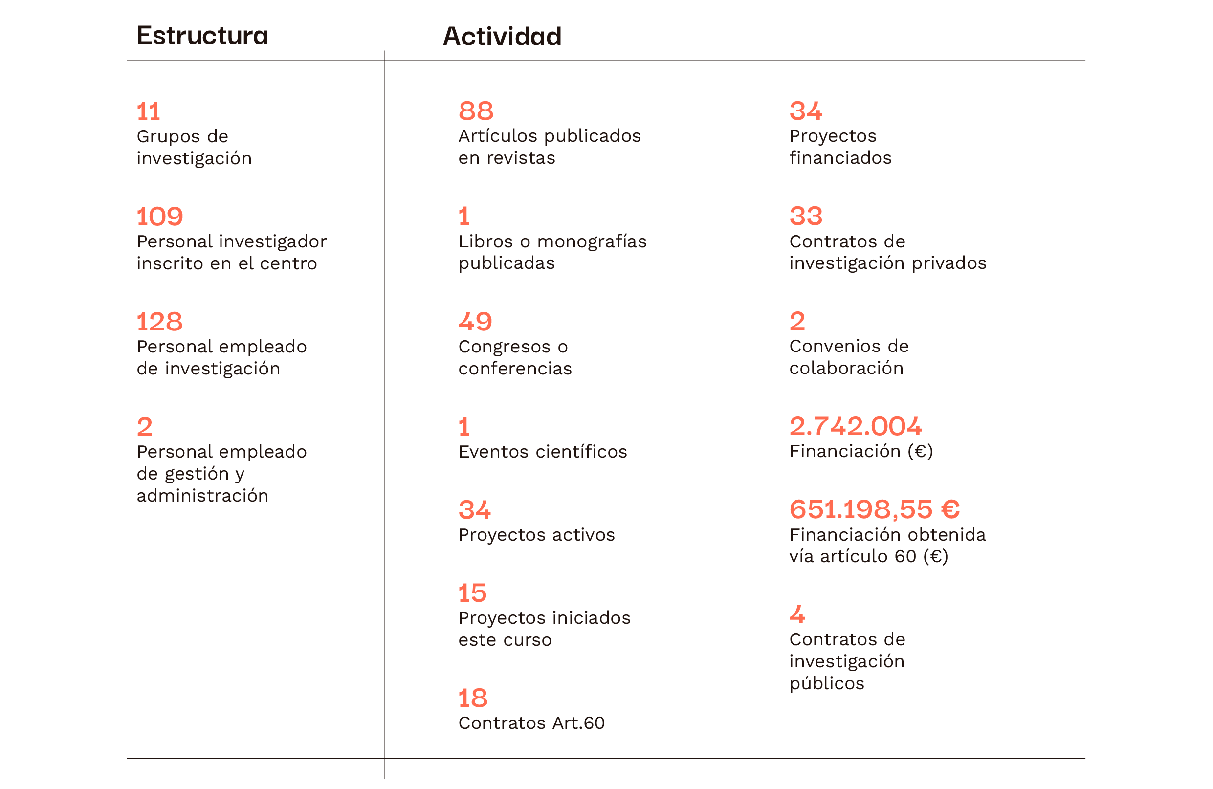 - Docencia: 75 seminarios organizados y 16 proyectos de movilidad para profesorado financiados.